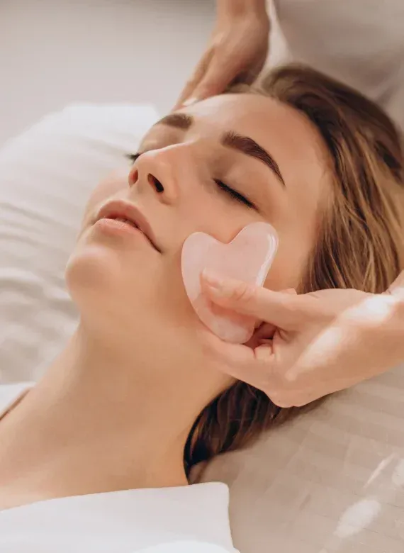 Gua Sha je jemná masážna technika, ktorá pochádza z tradičnej ázijskej starostlivosti o pleť. Pri ošetrení sa používa špeciálny kameň, ktorým sa masíruje pokožka tváre a podporuje sa prirodzená cirkulácia.